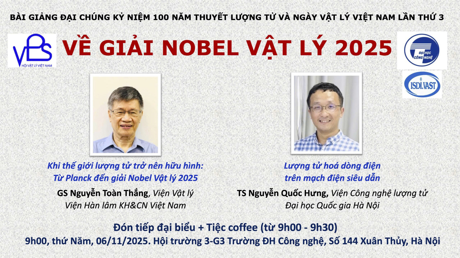 Ngày Vật lý Việt Nam 6-11 và bài giảng đại chúng về giải Nobel Vật lý 2025