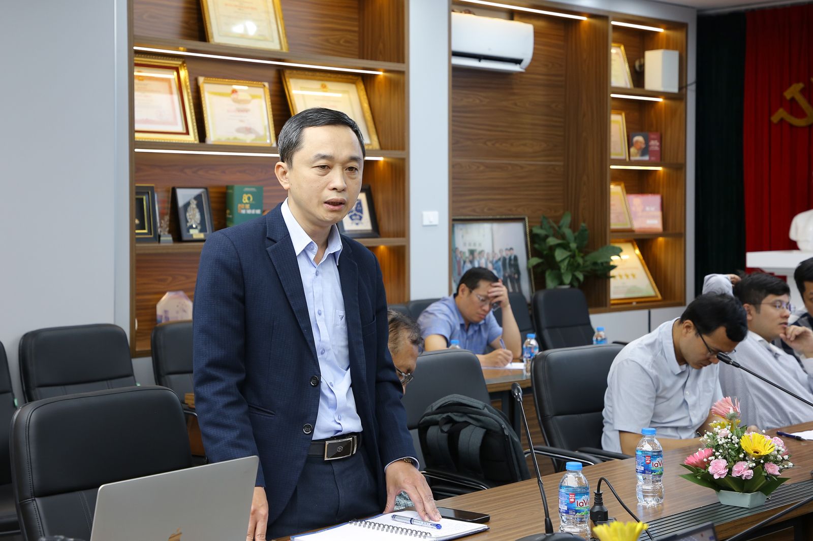 Tham dự hội nghị có GS.TS Chử Đức Trình – Bí thư Đảng ủy, Hiệu trưởng; TS. Nguyễn Thu Hương – Phó Hiệu trưởng cùng lãnh đạo các khoa, viện và giảng viên giảng dạy các học phần nền tảng.