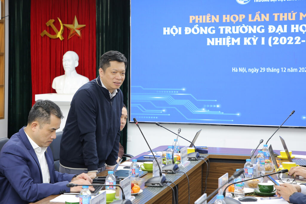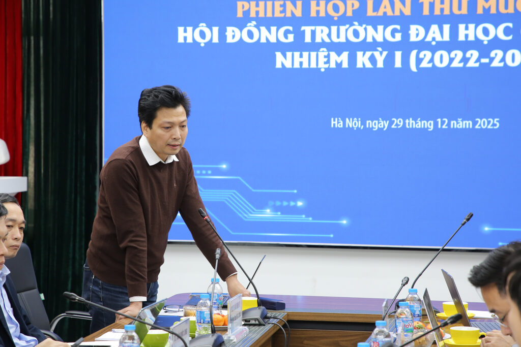 Trong phần thảo luận, các thành viên Hội đồng Trường bày tỏ niềm vui và sự tự hào khi được đồng hành cùng Trường Đại học Công nghệ trong suốt quá trình phát triển vừa qua. Nhiều ý kiến chia sẻ những dấu ấn cá nhân khi trở thành thành viên Hội đồng và chứng kiến sự trưởng thành, đổi mới mạnh mẽ của UET trong đào tạo, nghiên cứu khoa học và hợp tác với doanh nghiệp. Đại diện lãnh đạo doanh nghiệp, ông Trần Hữu Quyền – Chủ tịch Hội đồng quản trị Công ty Cổ phần Công nghệ Công nghiệp Bưu chính viễn thông VNPT Technology và TS. Hà Minh – Chủ tịch Hội đồng quản trị Công ty Cổ phần Tư vấn công nghệ, thiết bị và Kiểm định xây dựng – CONINCO khẳng định mong muốn tiếp tục gắn bó, đóng góp cho sự phát triển của Nhà trường trong nhiều vai trò khác nhau trong thời gian tới. Các thành viên Hội đồng cũng bày tỏ sự phấn khởi trước những bước tiến của UET tại cơ sở Hòa Lạc – không gian phát triển mới, hiện đại, tạo nền tảng cho đào tạo tài năng và hệ sinh thái đổi mới sáng tạo, đồng thời cam kết tiếp tục đồng hành cùng Nhà trường trên chặng đường phát triển tiếp theo.
