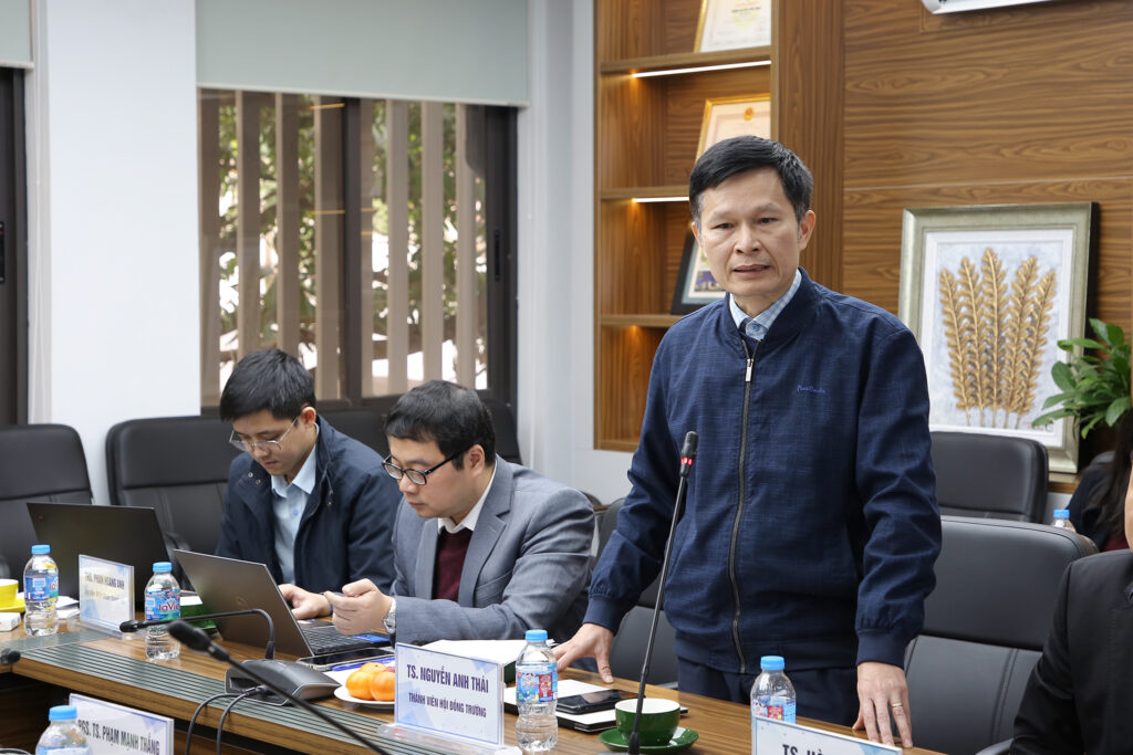 Tại phiên họp, PGS.TS Nguyễn Hoài Sơn – Thư ký Hội đồng trường, Trưởng phòng Khoa học công nghệ và Hợp tác phát triển đã lần lượt trình bày các nội dung báo cáo.