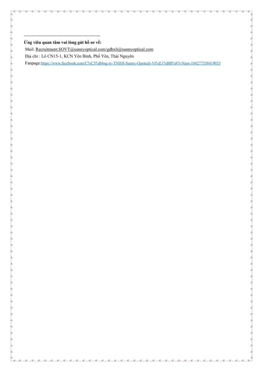 Thông báo: Tuyển dụng vị trí kỹ sư tại Công ty TNHH Sunny Opotech Việt Nam thuộc Tập toàn Sunny Opotical